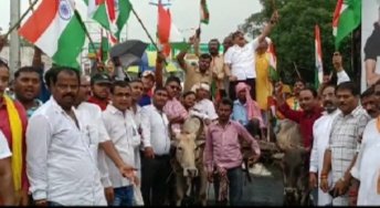 धनबाद । देश की आजादी के 75 वें वर्ष के अवसर पर अमृत महोत्सव के तहत “हर घर तिरंगा” अभियान चलाया जा रहा है। जिसके तहत धनबाद में विधायक राज सिन्हा के नेतृत्व में बैलगाड़ी पर तिरंगा यात्रा निकाला गया। जिसमें भारी संख्या में महिला-पुरुष तथा भाजपा कार्यकर्ताओं ने हाथ में तिरंगा थामें देशभक्ति गीत पर झूमते दिखे। वही बैलगाड़ी पर सवार होकर रणधीर वर्मा चौक पहुंचे विधायक राज सिन्हा ने बताया कि आजादी के अमृत महोत्सव के अवसर पर देश का किसान, युवा, महिला पूरी श्रद्धा और देशभक्ति के साथ “हर घर तिरंगा” अभियान के ऐतिहासिक पल का हिस्सा बनकर देश के स्वतंत्रता सेनानियों को याद कर रहा है।