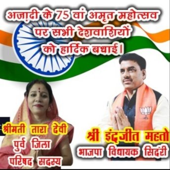 सिंदरी से भाजपा विधायक इंद्रजीत महतो की ओर से आजादी के अमृत महोत्सव पर सभी देशवासियों को हार्दिक बधाई Post navigation गणेश अग्रवाल की ओर से आजादी के अमृत महोत्सव पर सभी देशवासियों को हार्दिक बधाई कुसुम वर्मा, वार्ड नंबर 36 की पार्षद प्रत्याशी की ओर से आजादी के अमृत महोत्सव पर सभी देशवासियों को हार्दिक बधाई