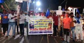 भगतडीह । भीम आर्मी के द्वारा गुरुवार की देर शाम कैंडल मार्च निकाला गया 9 साल के मासूम बच्चे इंद्र कुमार मेघवाल की बेरहमी से पिटाई के बाद मौत मामले में उसके शिक्षक छैला सिंह पर लोगों का आक्रोश बढ़ता जा रहा है लोग लगातार शिक्षक छैला सिंह की गिरफ्तारी और उस पर कार्यवाही की मांग कर रहे हैं इसी कड़ी में गुरुवार की देर शाम भीम आर्मी के कई जवानों ने बस्ताकोला से कतरास मोड़ तक कैंडल मार्च निकाला लोगों के हुजूम ने राजस्थान के मुख्यमंत्री अशोक गहलोत मुर्दाबाद के नारे लगाए और अभिलंब दोषियों पर कार्रवाई की मांग की है ।