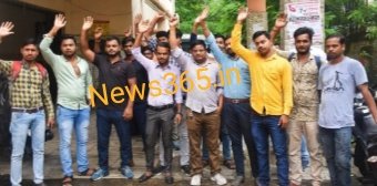 सिविल सर्जन कार्यालय के बाहर प्रदर्शन करते वीएलई के कर्मचारी