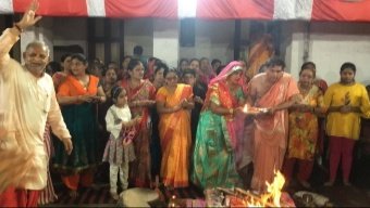 झरिया । झरिया के सत्यनारायण मंदिर में नवरात्र के महाष्टमी पूजन के शुभ अवसर पर महायज्ञ का आयोजन किया गया. शास्त्रीय सम्मत वैदिक मंत्रों के साथ देवी जगदंबिका का पूजन किया गया. मुख्य यजमान पीयूष भाई सपत्नीक यज्ञ अनुष्ठान में थे. पंडित जयदेव शुक्ला, हरीश जोशी, नरेश भट्ट, जगदीश भट्ट, होमेश जोशी आदि मंत्रोच्चार से देवी मां की आराधना में लगे थे. घृत की धारा से यज्ञ की पवित्र अग्नि कल्याणमय ऊष्मा दे रही थी. ढोल घंट शंखनाद के साथ भक्तों ने मां की आरती की.