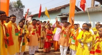 इस कलश यात्रा में बड़ी ही उत्साह के साथ माताएं, बहनों और श्रद्धालुओं ने भाग लिया। पूरे पारंपारिक ढोल ताशे की आवाज से कलश यात्रा के दौरान अलग ही भक्तिपूर्ण माहौल रहा। चैत्र मास के पावन माह में मां काली मंदिर प्राण प्रतिष्ठा होना हम सभी सनातनियों के लिए बड़े ही गर्व की बात है।इस तरह के धार्मिक अनुष्ठान का आयोजनों में हम सब को बढ़-चढ़कर भाग लेना चाहिए। अपने अपने सामर्थ के हिसाब से सहयोग भी करना चाहिए।मौके पर मुख्य रूप से श्याम सुंदर मंडल, राजेंद्र मंडल,विजय मंडल, नीलांबर मंडल,विनोद मंडल, गौरी शंकर मंडल ,अमृत मंडल,पांचू मंडल,बलराम मंडल,शंकर मंडल समेत तमाम लोग उपस्थित रहे।