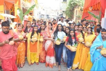 झरिया । श्री श्री बाल हनुमान मंदिर पोद्दार पाड़ा द्वारा वृहस्पतिवार को कलश शोभा यात्रा निकाली गई, जिसमे 151 कलश लिए महिलाएं वा युवतियों ने नगर भ्रमण किया, मंदिर में विधिवत पूजा अर्चना के बाद गाजे बाजे के साथ फुलरीबाग शिव मंदिर से जल उठा कर, पोद्दार पाड़ा, इंदिरा चौक, बस स्टैंड, धर्मशाला रोड होते हुए, पूना मंदिर पहुंचा, मौके पर पुजारी भरत मिश्रा , मंटू साव , रूपेश वर्मा, विवेक वर्मा , निषितनाथ, पप्पू धीवर , अरुण कुमार , समीर दत्ता , राज मिश्रा, पूनम पाठक, पारोमिता सेन, राजू वर्मा आदि थे