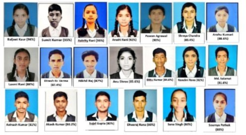 विद्यालय में प्रथम 20 टॉप स्थान प्राप्त करने वाले छात्रों में सुमित कुमार 95%, आकृति रानी 93%, आरुषि रानी 92%, पवन कुमार अग्रवाल 90%, श्रेया चंद्रा 89.4%, अंशु कुमारी 88.6 %, लक्ष्मी रानी 88%, दिनेश कुमार वर्मा 87.4%, निखिल राज 87%,अन्नू श्री 85.6%, बिट्टू कुमार 84.6%, नंदनी राणा 82%, सलामत अंसारी 81.6%, अविनाश कुमार 81%, आकाश कुमार 80.2%, सुजल गुप्ता 80%, धीरज कुमार राणा 80%,सना सिंह 80%, सौम्या पाठक 80% के साथ सफल रहे। विद्यालय का परिणाम शत प्रतिशत रहा।