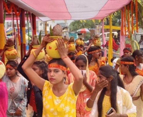 कतरास । तेतुलमारी जीरो शिम स्थित शिव मंदिर में 9 दिवसीय श्री श्री 1008 शिव शक्ति महायज्ञ को लेकर विशाल कलश यात्रा सह शोभा यात्रा निकाली गयी, जिसमे 351 कलश व शोभा यात्रा , पताका व नवीन गुप्ता की टीम द्वारा आकर्षक हनुमान, राम लक्ष्मण सीता, गणेश,शिव पार्वती, बंदर भालू की झांकी के साथ कलश यात्रा यज्ञ मंडप से निकल कर तेतुलमारी टाउनशिप, सुभाष चौक,तेतुलमारी, पाण्डेयडीह होते हुई सूर्य मंदिर छठ तालाब तेतुलमारी में मंत्रोचारण के साथ कलश में जल भरवा कर पुनः गाजे बाजे डी जे के धुन जय श्री राम,हर हर महादेव के नारों के साथ क्षेत्र भक्तिमय माहौल में पुनः यज्ञ मंडप पहुचा, जगह जगह शीतल पे व शर्बत व कमिटी द्वारा शर्बत व खीर प्रसाद के रूप में सभी श्रद्धालुओं के बीच वितरित किया गया। यजमान मिथलेश निषाद ,महादेव महतो व दुलारी सिंह तीनो सह पत्नी यज्ञमान मुख्य कलश लेकर साथ साथ चल रहे थे । साथ मे आचार्य पंडित कपिलदेव शास्त्री,उपचारी पप्पू पांडेय,वैदिक धीरज शास्त्री,किशोर शास्त्री,धनंजय शास्त्री, रोहित शास्त्री ने मंत्रोचारण के साथ कलश में जल भरण करवाया,भूतनाथ बाबा के देखरेख में यज्ञ चलेगा। कलश यात्रा में टुंडी विधायक मथुरा प्रसाद महतो,झामुमो के पूर्व प्रखण्ड अध्यक्ष रतिलाल टुडू,गुरुकुल कतरास के निर्देशक रंजीत कुमार,आर एस एस के धनबाद महानगर कार्यवाह पंकज सिंह,सांसद प्रतिनिधि सह पूर्व मुखिया नरेश महतो, जीप सदस्य मो इशराफिल उर्फ लाला सहित अन्य अतिथि उपस्थित थे।